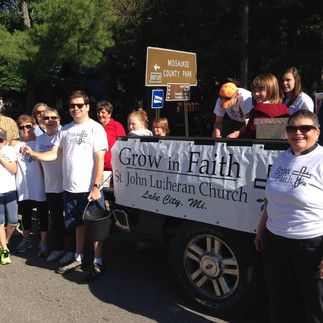 Above: Pastor Rosanne with the Confirmation Kids at a prior congregation, with Confirmation kids at Charge retreat at Great Wolf Lodge, and at St. John's Entry to the Greatest Fourth in the North Parade.